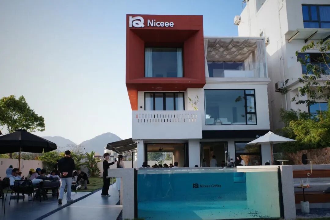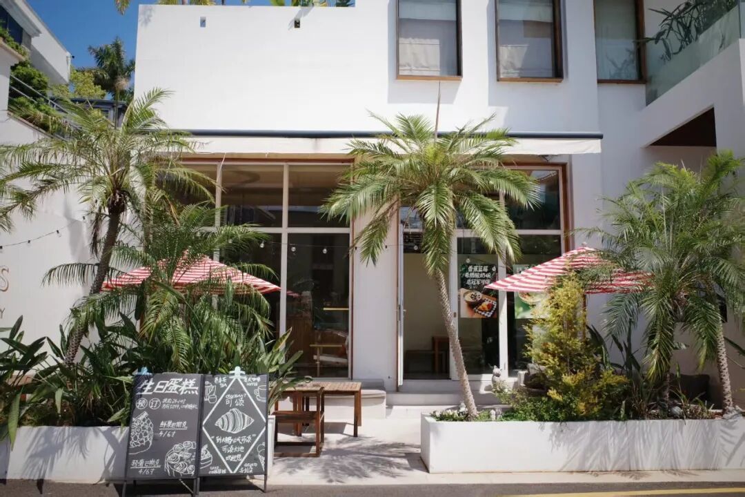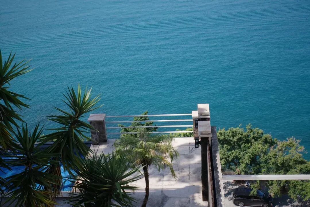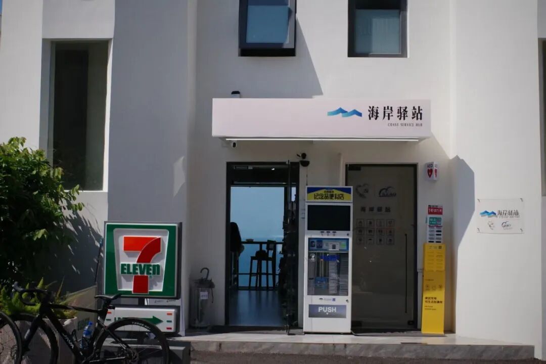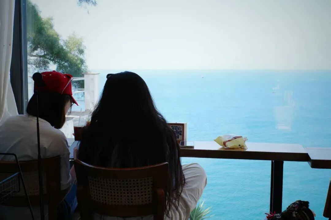 开在峭壁边上,面朝大海。纯白色的独栋小楼,橙绿色的牌号反而不显眼,海岸驿站四个字的出现,偶像剧氛围短暂拉满。走进去之后,靠海那面照旧落地窗,无敌海景胜仗怼到目下!