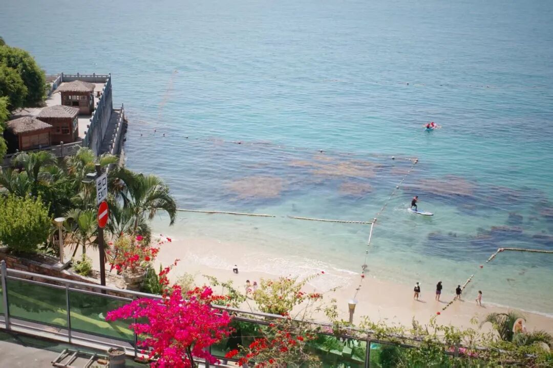 靠浪骑游艇会那边是桔钓沙莱华度假旅店的私东说念主沙滩,住店的来宾才调进。环球沙滩在另一头,免费敞开,东说念主也多些。但其实环球区域的沙质和水质也不差,够玩了。