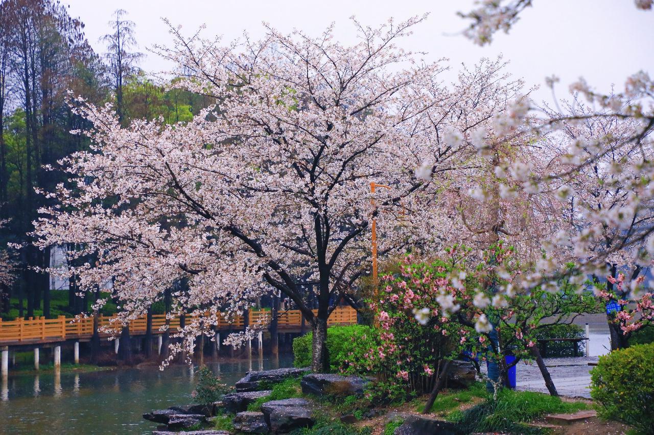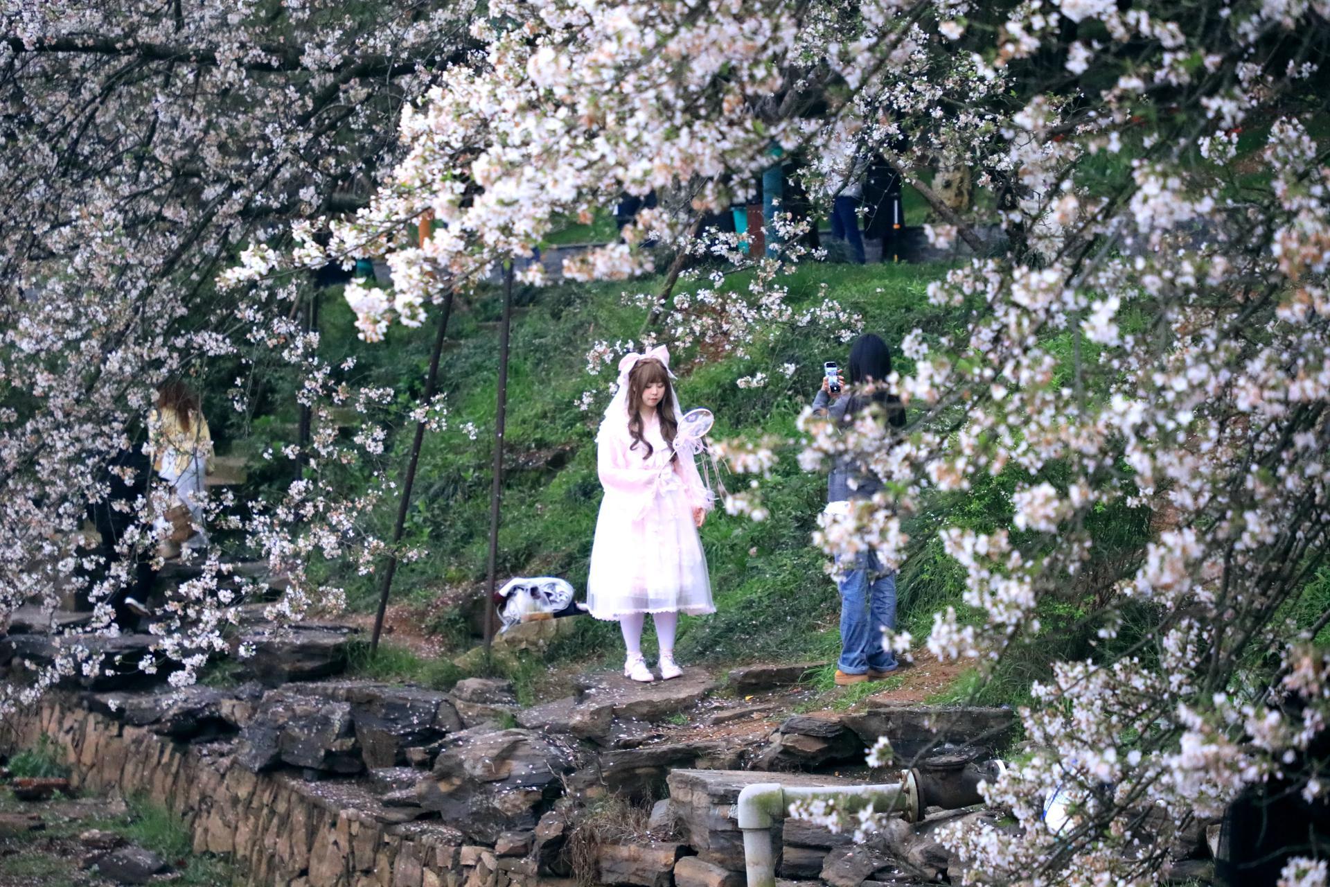 相较于风和日丽的天气,OD体育(中国)雨中赏花亦然一种汗漫,搭配起后头的涔涔,反而更像踏进于瑶池中。穿戴清静白色萝莉装的贺同学,撑着一把透明雨伞,散步在湖边寻找着最好拍照点。她和同学专门从株洲赶来拍樱花,本来还挂念下雨天拍照会受影响,没思到却成绩了一个东谈主少、景好意思的省植物园。“中午的技艺,雨停了,天也亮起来了,太稳妥咱们拍照了。”贺同学在湖边的一块礁石上找到了拍照的位置,远远看去,她仿佛融进了这幅最好意思的春日图中。