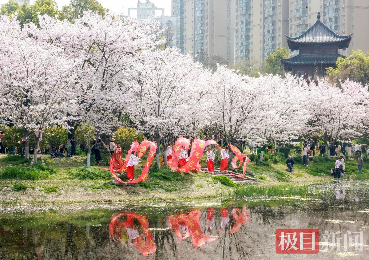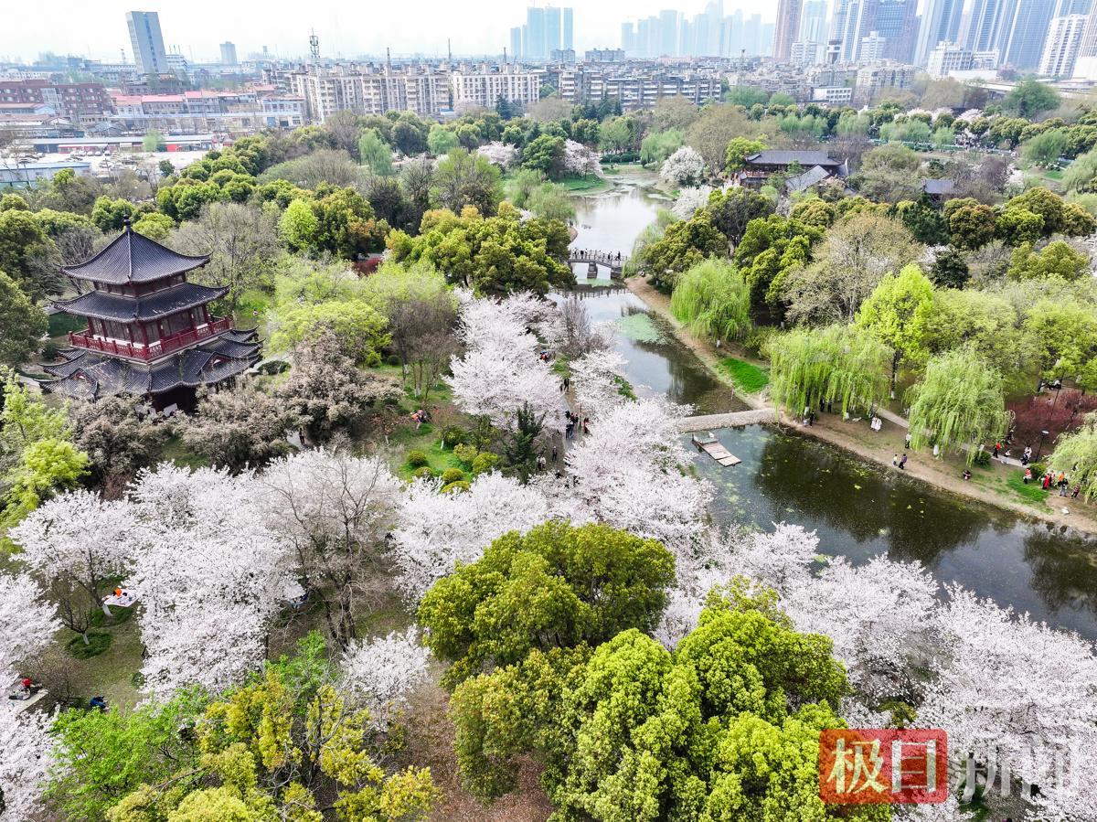 三月的春风,为江城武汉披上了最柔曼的霓裳。近日,被誉为“江北赏樱明珠”的堤角公园,逾千株樱花投入全盛之期,深广花海如约而至,拉开了以“樱漫堤角·春满江岸”为主题,合股国风元素的赏樱盛宴的帷幕。