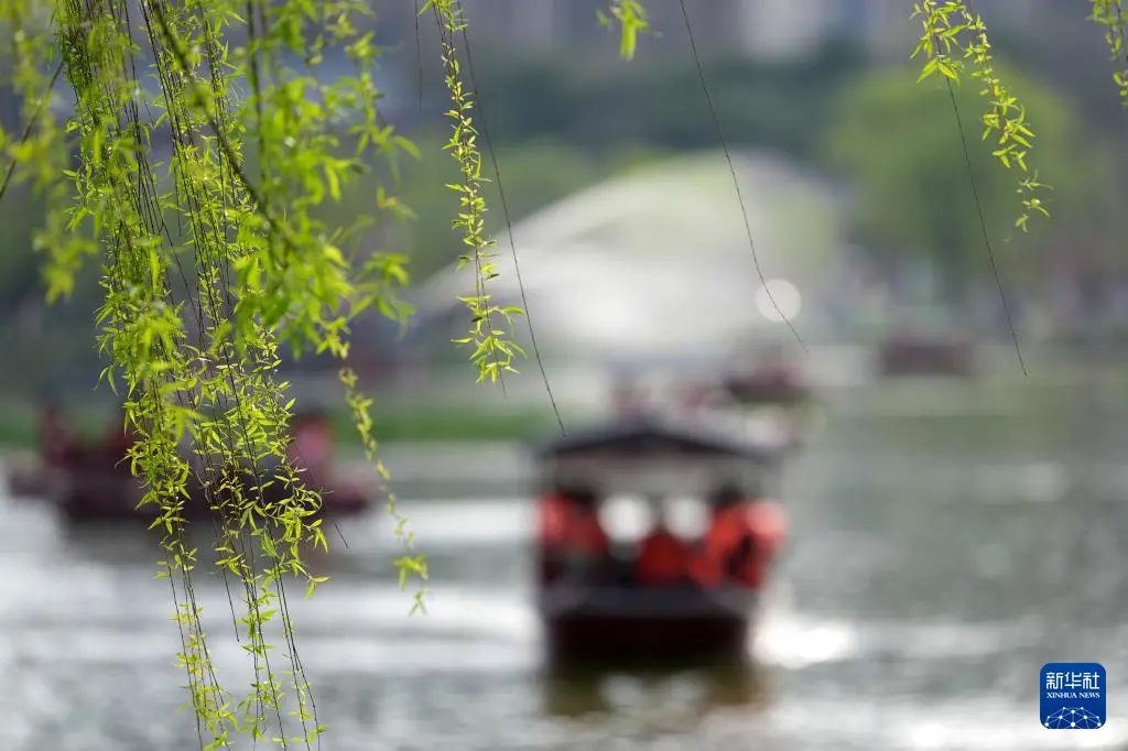 近期古齐西安气温合手续高潮,在西安市兴庆宫公园,兴庆池旁垂柳抽芽、春花开放,浓浓春色劝诱多数游东谈主前来踏青赏春。
