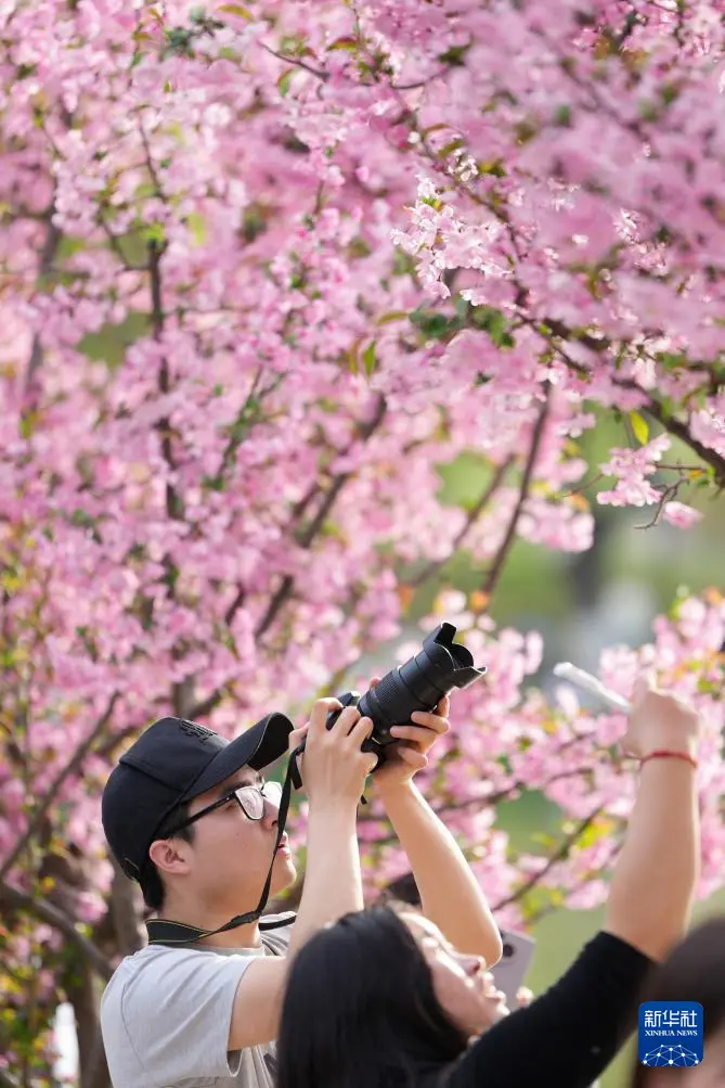 3月28日,游东谈主在西安市兴庆宫公园拍摄垂丝海棠。