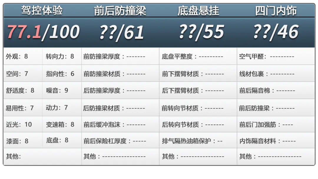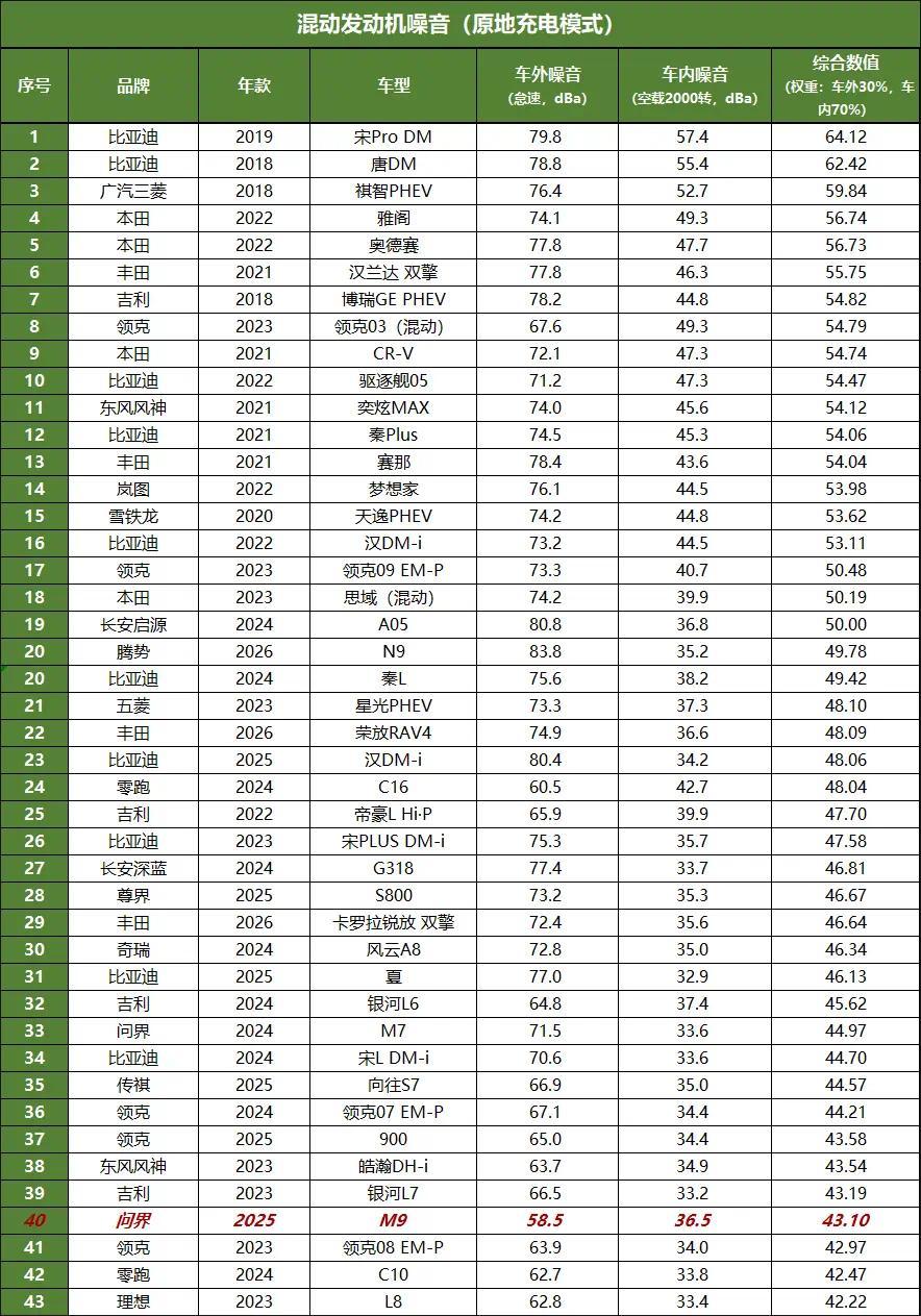 测试形势:发动机全皆热机,水温广博,关闭空调,广博怠速下进行测试;打迷惑动机盖、取下引擎罩,在距离发动机机体上方20厘米处,进行杂音汇集,取平均值,为车外发动机杂音数值(dBa);在车内,将车窗关闭,发动机空载运行2000转/分,将杂音仪置于方针盘正上方,取平均值,为车内发动机杂音(dBa)数值。况兼以车内30%,车外70%的权重进行综总狡计。