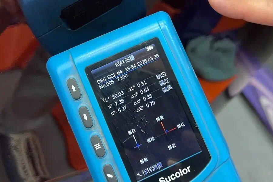 历程测试,最大色差值位于后保障杠处,色差值为0.79ΔE,比基准点稍白偏红偏黄。从数值上来看,这辆车的喷漆工艺质地限制照旧格外可以的。