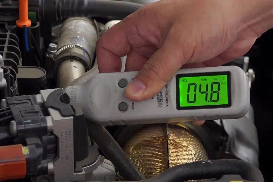测试形势:水温广博后,关掉空调,在怠速情景下,使用测振仪垂直曲轴方针,将探针战斗发动机金属机体中间的最高位置,测量发动机振动加快度值,数值越低,标明振动越小。