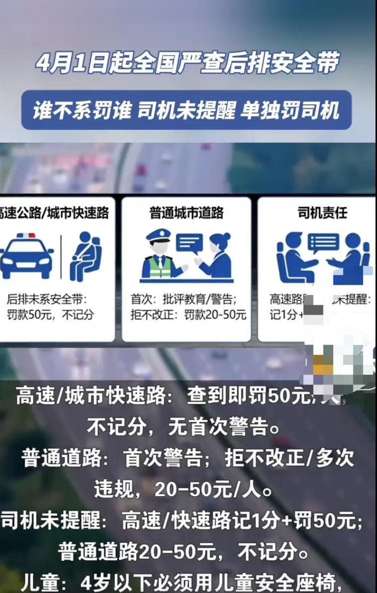 近日,4.1日起后排安全带严查的新闻被漫衍,从(4 月 1 日)启动,宇宙讲求参预安全带严管状态,AI 高清合手拍全遮蔽,后排也不再是 “法外之地”,谁不系罚谁,况兼司机是有义务提示的。况兼还有措置圭臬,宇宙长入且把柄不同路段有所诀别:在高速及城市快速路上,后排乘客未系安全带将被罚金50元/东说念主,而司机未提示则会被罚金50元并扣1分;在平时说念路上初度违纪将给以告诫,若拒不改正,则会面对20至50元/东说念主的罚金。