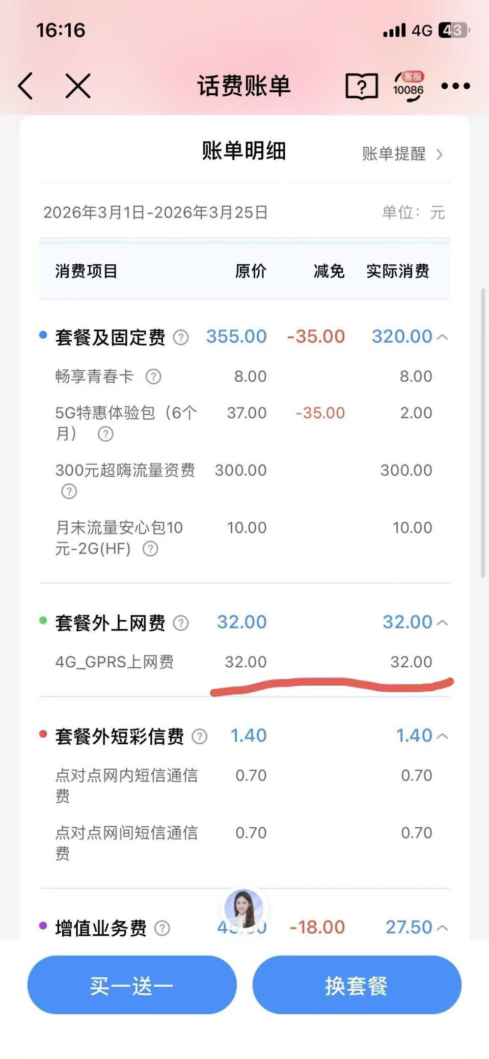 以上三者均未提醒有互斥情形或弗成订购提醒。3月25日,林先生3月账单明细中,套餐外上网费为32元。