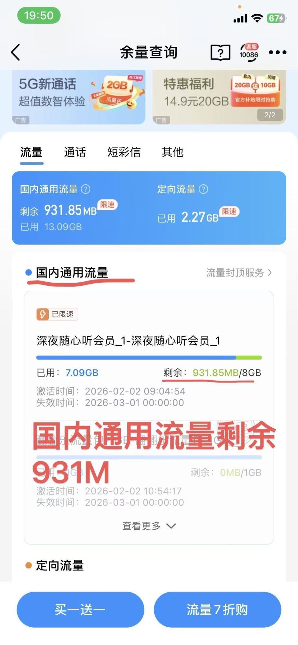 林先生提供的把柄披露,2月5日,中国出动短信告知,他当月统统通用流量沿途使用实现,触发流量安全阀,暂停当月流量功能,次月1日自动收复。与此同期,林先生在中国出动App余量查询披露,其国内通用流量“夜深随性听会员”剩余931.85M。