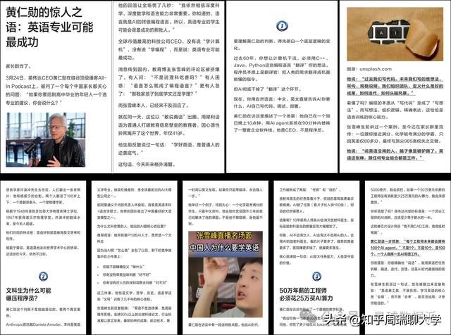 黄仁勋说的“英语专科”,不是那种只教语法、精读、写稿的传统英语讲明。他说的“话语智商”,是精确抒发、逻辑构建、抽象想维的抽象教养。这意味着,不是通盘文科生都能自动成为AI时期的赢家。