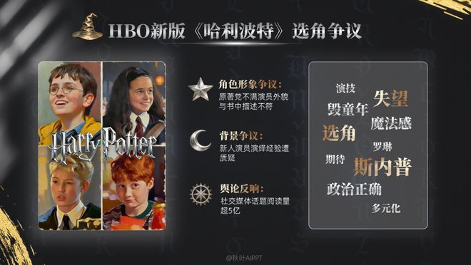 图片上:选择 HP 经典元素(魔杖、金属感徽章、深绿色配景),幸免蒙眬、杂沓的图片,保证画面干净有质感;