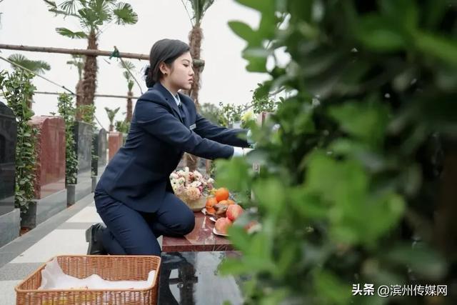 一个年青的身影穿梭在墓碑间,她手捧鲜花,神志庄重,对着墓碑深深地鞠躬,然后轻轻擦抹碑面,摆放供品,共事拍下祭拜的进程发给骸骨的家属——让屏幕那头的亲东说念主概况宽解。