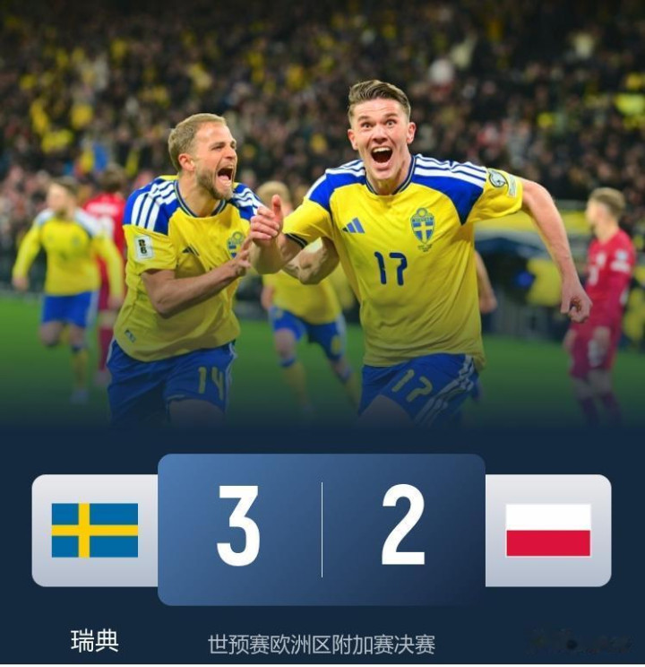 最终瑞典3-2波兰晋级全国杯,将参加全国杯F组,与荷兰、日本和突尼斯同组。