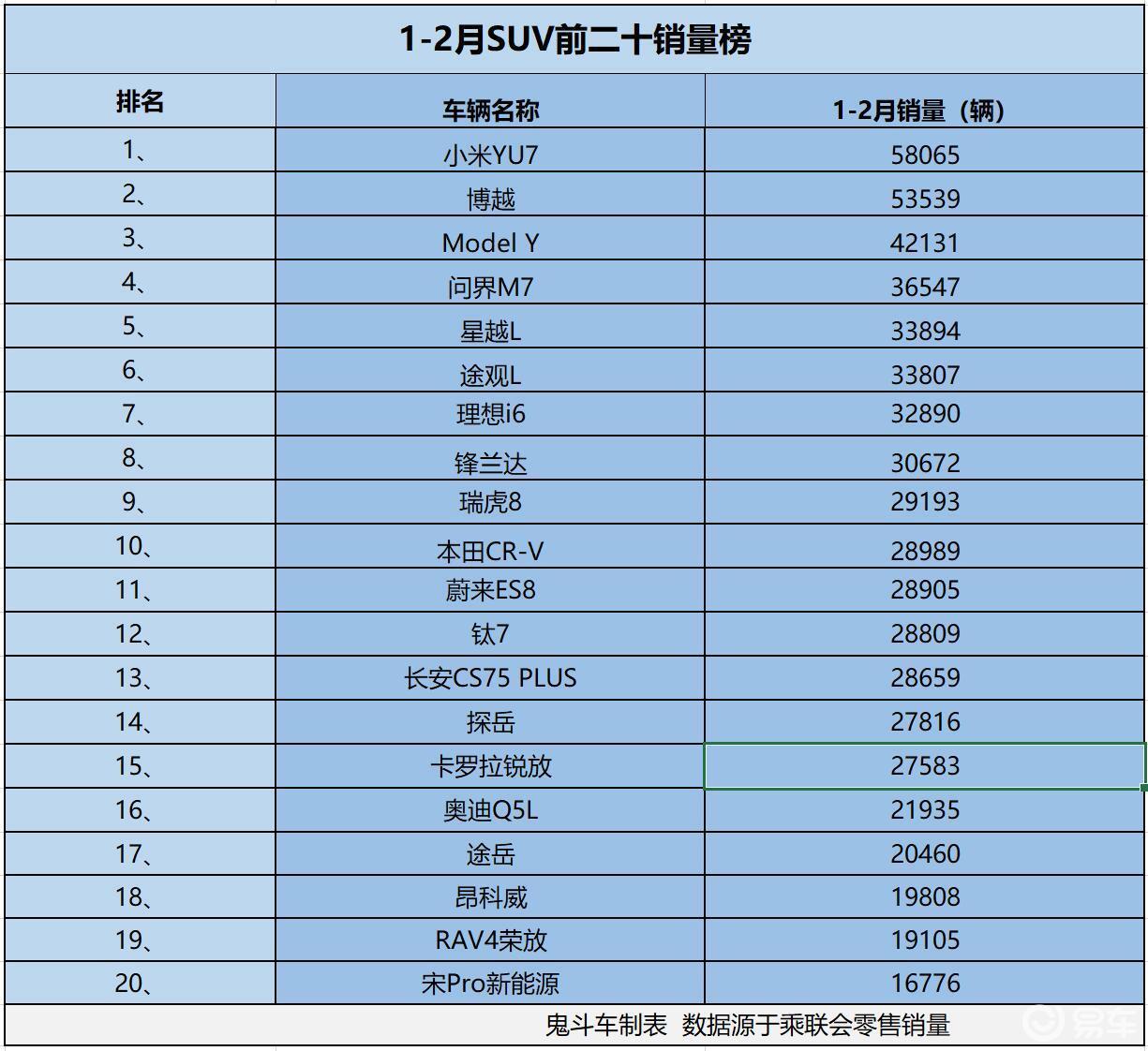 许多东说念主没思到,榜单上,排行第一位的车型是小米YU7,1-2月累计零卖销量达到58065辆,这款轿跑滋味完满的SUV车型,很受争议,尽管许多声量不够友好,但还有许多耗尽者得志用真金白银为其买单。