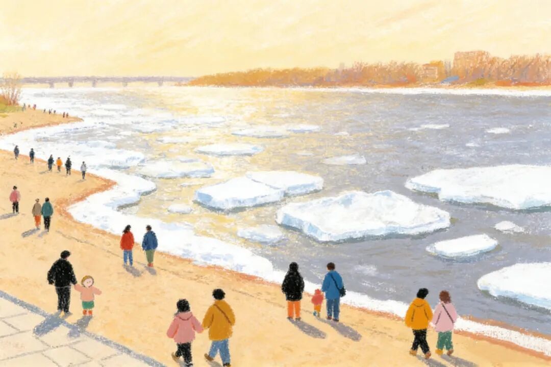 松花江边三月末还能看到冰层,但冰的颜料依然变了,从冬天的灰白色造成透蓝色。江边启动出现散布的东说念主,风还冷,但阳光依然有了温度。东北东说念主过春天,过的是一种格调,只消有太阳,各人便以为春天来了,就敢穿薄外衣外出。