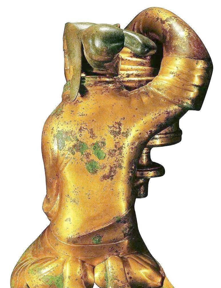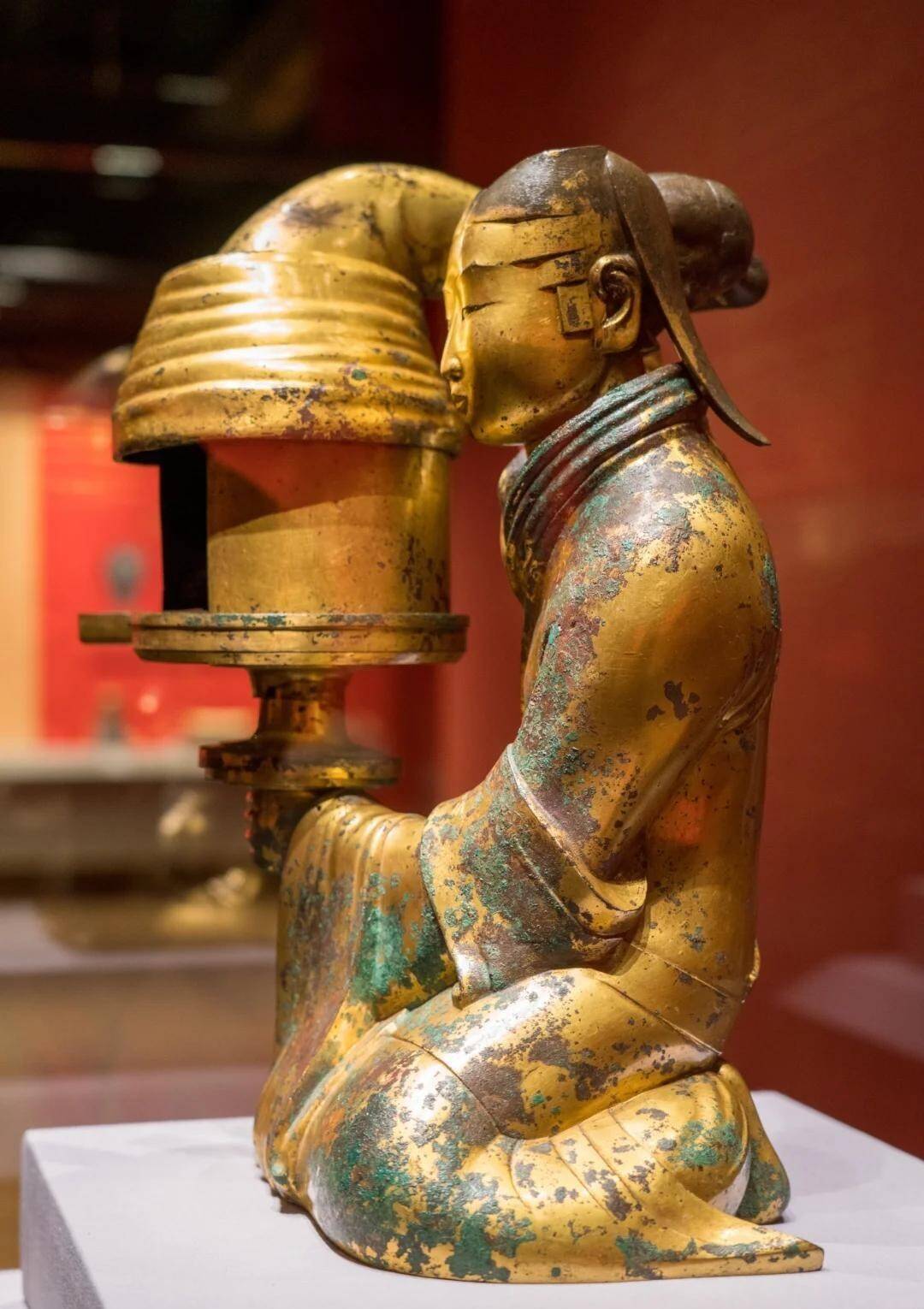 东说念主物衣纹褶皱写实,体表鎏金历经千年仍熠熠生辉,集环保科技与雕镂艺术于一体,被誉为“汉代最好意思灯具”。