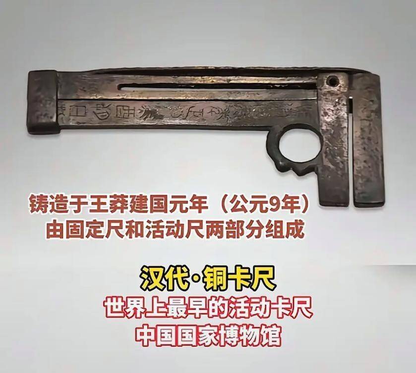 这件青铜锻造的滑动卡尺,铸成于公元初年的王莽新朝时期,原件保藏于中国国度博物馆。