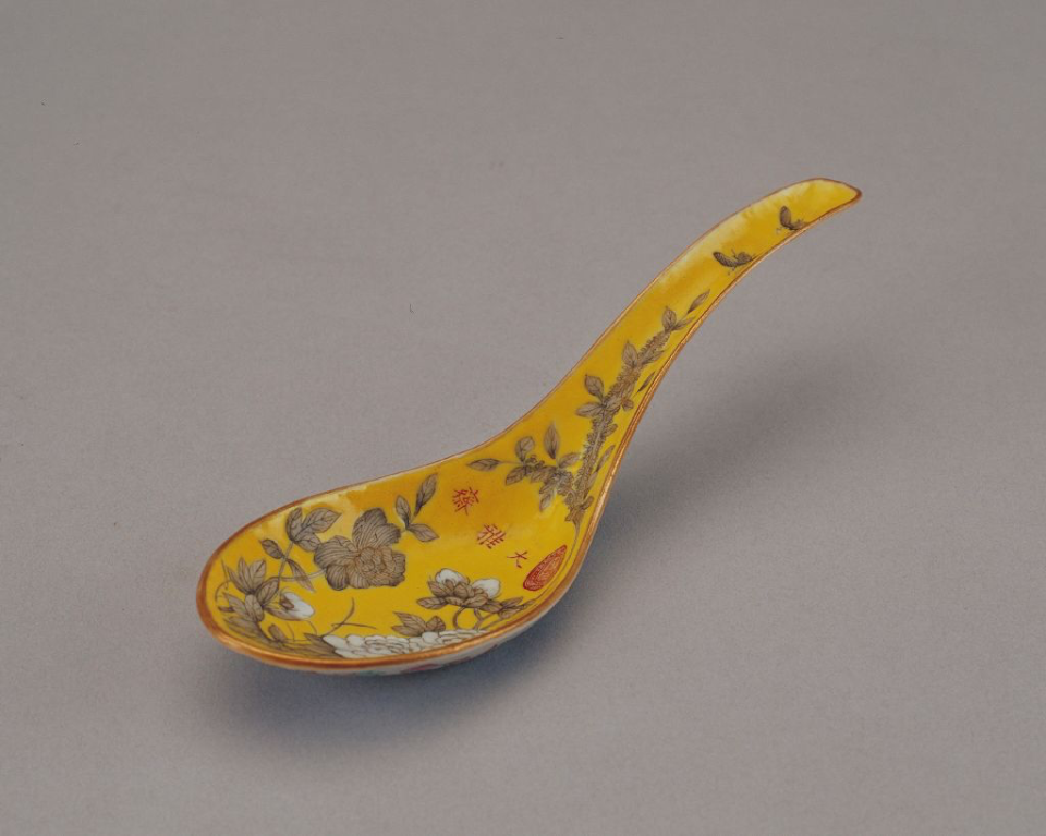 黄地墨彩花蝶纹羹匙