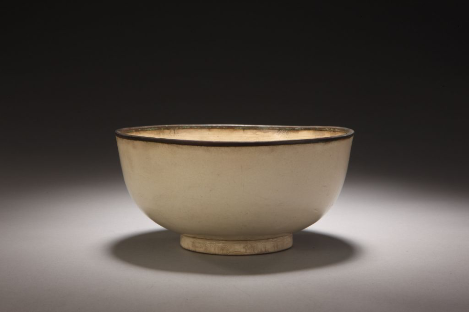 仿定窑白釉印花云龙纹碗