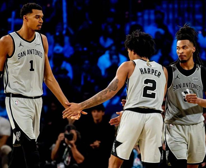 淌若说雷霆队的战绩在预期之中,那么马刺队的名次都备在料念念以外!适度当前,马刺队获得了57胜18负的战绩,排在西部第2位,仅逾期雷霆队(60胜16负)2.5个胜场,逾越西部第3的湖东说念主队(49胜26负)8个胜场!在惯例赛还剩7场的情况下,马刺队一经锁定了西部前2,而且保留着冲击西部第1的但愿。关于马刺队而言,这么的战绩和名次不值得吹嘘,却艰苦贵重,久违了,总共马刺球迷都不错在清晨破晓之前振臂高呼:圣安东尼奥不屈气永夜将至,因为火把就在文班亚马手中!