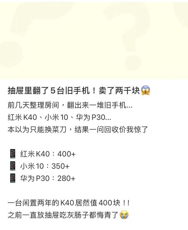 种草平台小红书上也有不少网友晒出我方在实体回收店评估旧手机的报价情况,比如红米 K40 报价 400+,但推行上这款机在电商平台的二手价钱也基本是 400多元,也便是回收与二手售价险些捏平的现象。而一些大内存手机则相配吃香,比如红魔的一款 24GB+1TB 的手机,即便勾选了机身损坏、手机无法开机,也能拼集报价上到 1900+ 元。