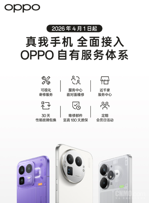 【CNMO科技讯息】3月31日,OPPO珍重书记,自2026年4月1日起,realme将全面接入OPPO售后办事聚集,realme用户原有售后权力基本保握不变,同期享受更优质的办事升级。