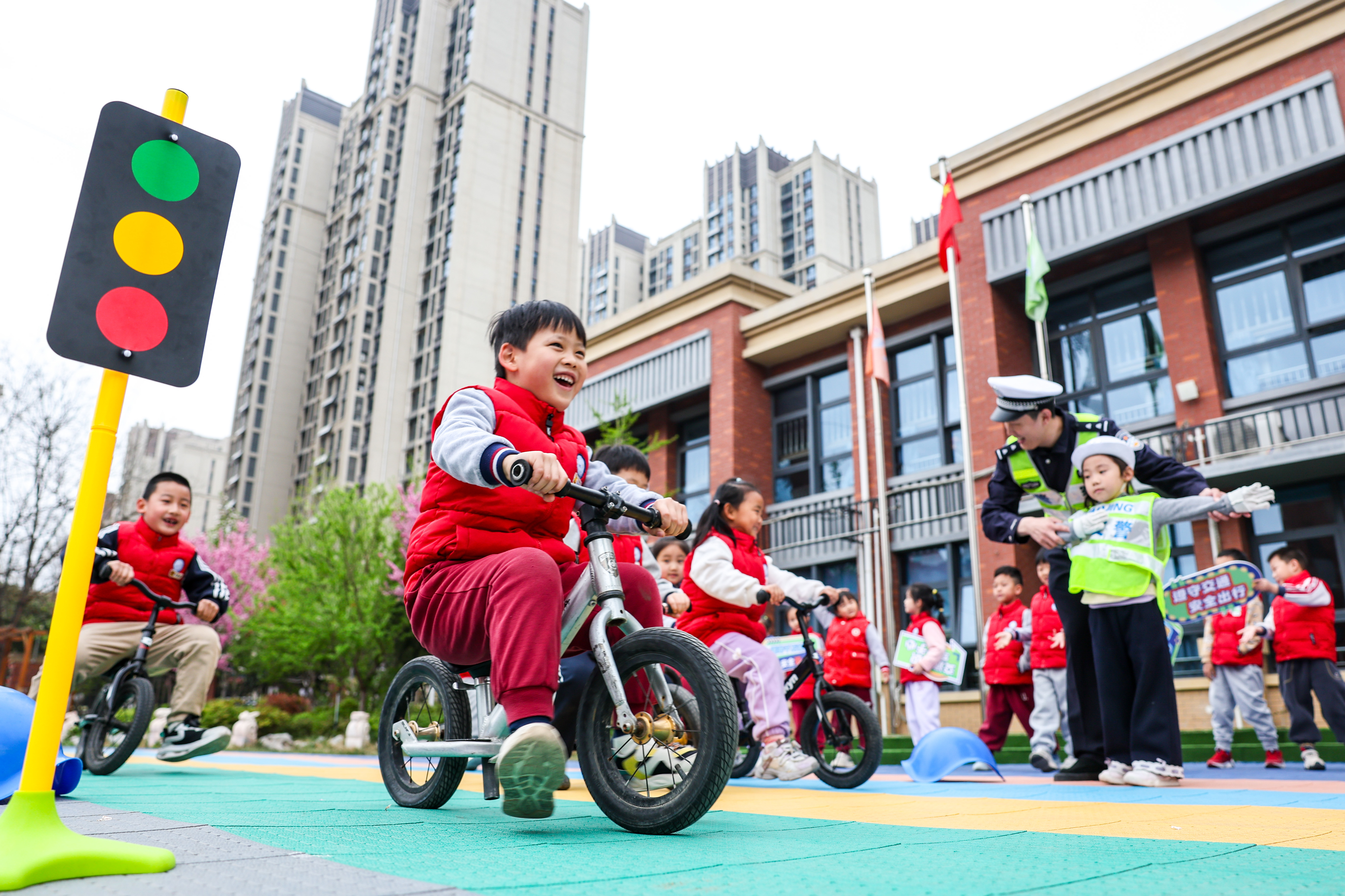 3月30日,od体育中国手机官网入口在河北省石家庄市新华区柏林幼儿园,小一又友们在交警引导下进行“红绿灯过马路”交通游戏。