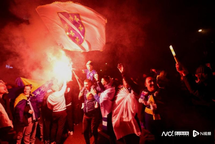 豪恣庆祝的波黑球迷。IC图片