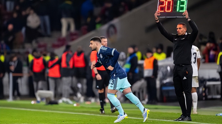 当德国队束缚创造契机又束缚花费契机之后,斯图加特球迷邋遢坐不住了。从28分钟傍边运行,看台上就运行整王人齐整地高喊“Deniz Undav”,替补席上的温达夫听到后理会了灿烂的笑颜,还向看台挥手暗示。到了上半场尾声,温达夫又在主场球迷的应承声中来到场边面带笑颜地热身。终于,纳格尔斯曼在中场休息后就更换3东谈主,包括用温达夫替下格纳布里,卡尔则换下了哈弗茨。于是,沃尔特马德和温达夫这两位上赛季在斯图加特合作过的锋线搭档,时隔泰半个赛季之后,终于在国度队从头组合。温达夫顶在9号位,沃尔特马德则略略后撤。
