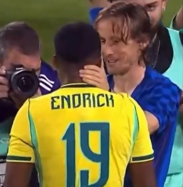 赛后,od体育中国手机官网入口19岁恩德里克抱起40岁的莫德里奇,莫德里奇和恩德里克拥抱聊了一会。